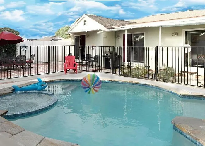 The 3-bedroom New Cheerful Villa, Pool, Spa, Mini Golf, Game Room, Fire Pit Next To Disneyland Anaheim is nestled 17 minutes on foot from World of Color and provides a hot tub. Featuring a patio, this Anaheim villa is situated within walking distance of Downtown Disney shopping.
